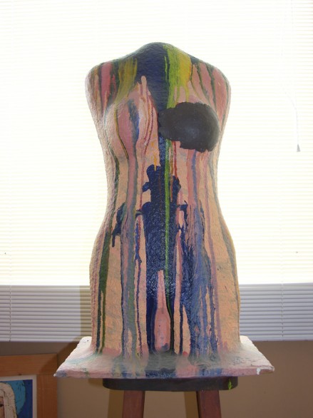 In mijn atelier gebruikte ik veel papier van goede kwaliteit. Aquarelpapier en etspapier voornamelijk. Van de misdrukken en afgekeurde werken maakte ik een papierpapje. Hiervan kneedde ik deze torso rond een vooraf opgebouwde constructie.